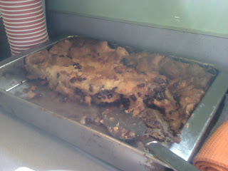Every year on Christmas Day, my relatives on Dad's side come over to share in the Christmas Festivities and then the day after Christmas we go to my Mom's side of the family's annual party. And of course, I have to bring something. I mean I do go to "The World's Premiere Culinary College". This is what I concocted this year. Yes, I know the custard ratio is wrong (typically it is 8 eggs to 1 quart of liquid) but this is how I was taught to bake bread pudding from a lady who had been doing it all her life in the basement of The Johns Hopkins Club.